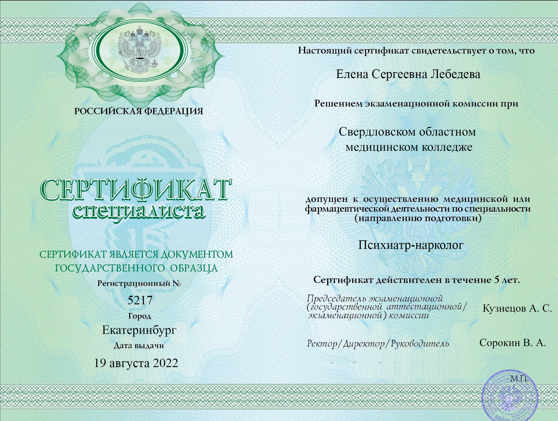 Елена Сергеевна Лебедева врач нарколог клиники доктора Стукаловой в Добрянке